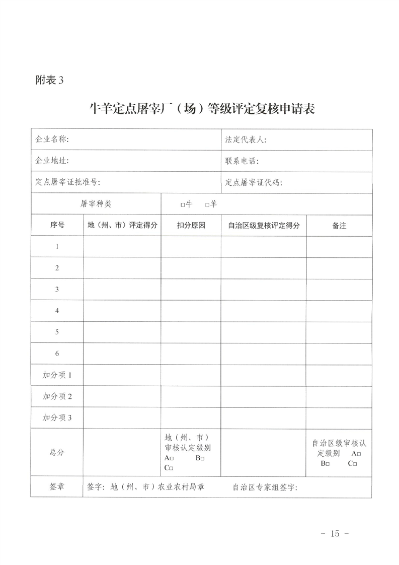 【本部门规范性文件】关于印发《新疆维吾尔自治区牛羊定点屠宰厂(场)分级管理办法(试行)》的通知